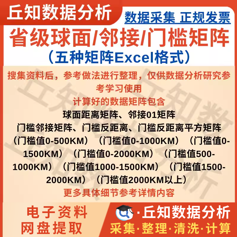 【高级数据】省级球面距离/邻接01/门槛邻接距离反距离反距离平方矩阵Excel版