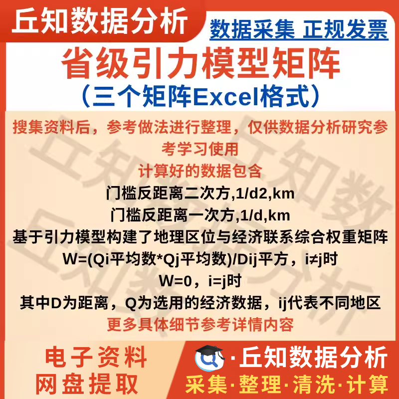 【高级数据】省级引力模型矩阵Excel格式反距离/平方地理经济综合权重矩阵2022