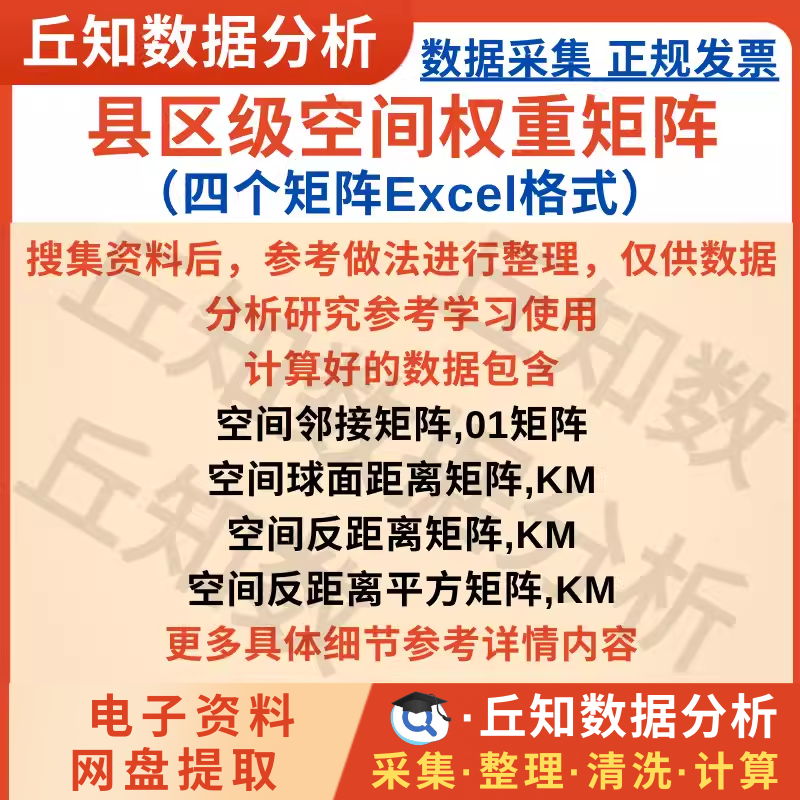 【高级数据】县区级空间权重矩阵Excel格式邻接01 球面距离 反距离 反距离平方