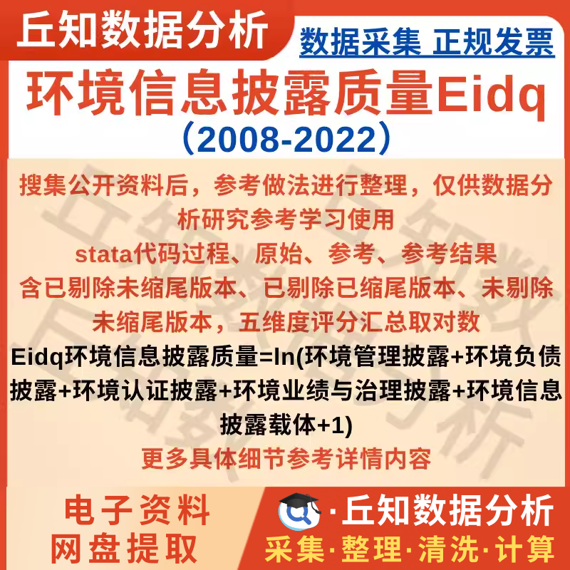 【普通数据】企业环境信息披露质量Eidq计算2022-2008stata代码含剔除缩尾版本