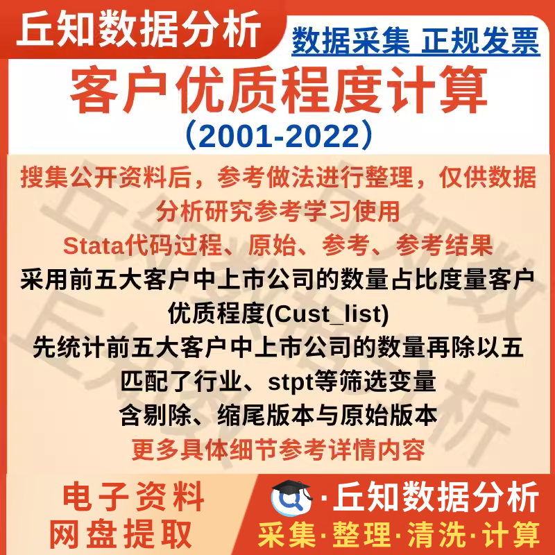 【普通数据】客户优质程度计算2022-2001Stata代码过程、参考结果,含剔除版本