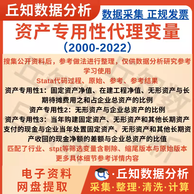 【普通数据】资产专用性代理变量(2000-2022)三种做法衡量 Stata代码 含参考