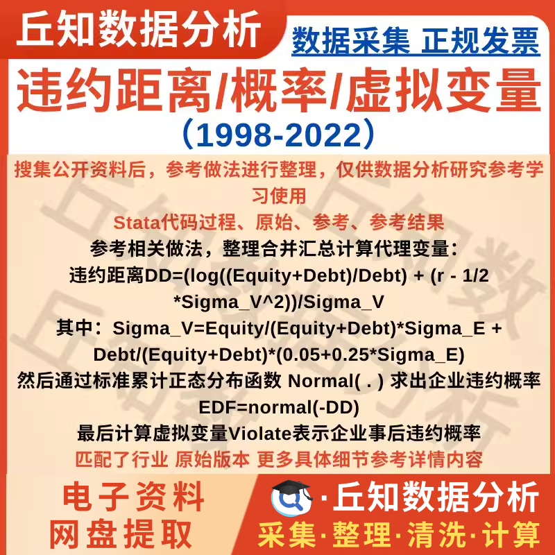 【普通数据】违约风险距离企业违约概率事后违约变量Stata计算代码1998-2022