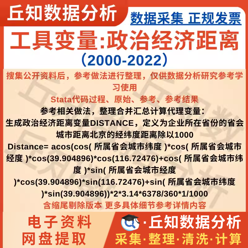 【普通数据】工具变量:政治经济距离Stata代码2000-2022DISTANCE地理距离剔除