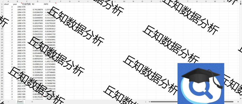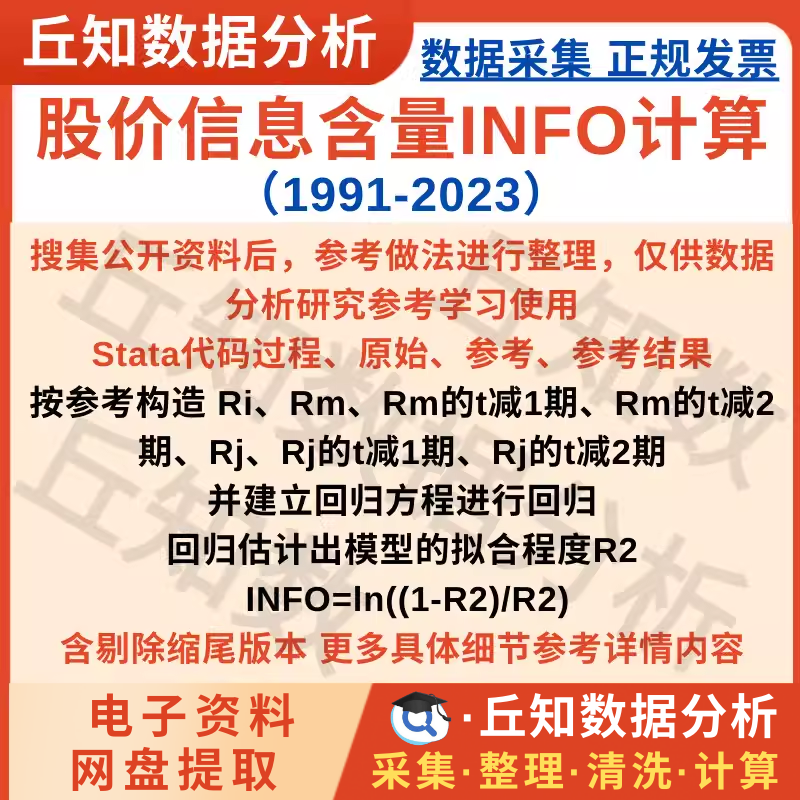 【普通数据】股价信息含量INFO计算1991-2023Stata代码过程INFO=ln((1-R2)/R2)