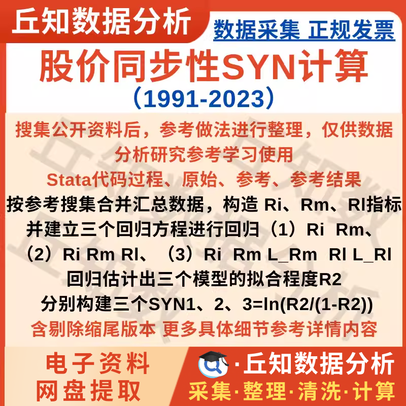 【普通数据】股价同步性SYN计算(1991-2023)Stata代码过程SYN=ln(R2/(1-R2))