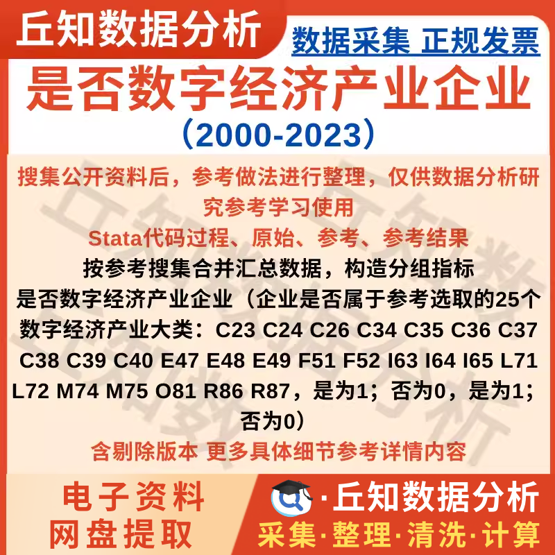 【普通数据】是否数字经济产业企业 2000-2023 Stata代码过程、原始、参考结果