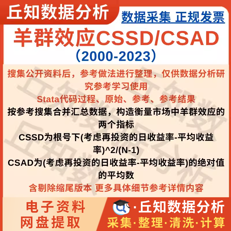 【普通数据】市场羊群效应CSSD/CSAD2000-2023 Stata代码过程、原始、参考结果