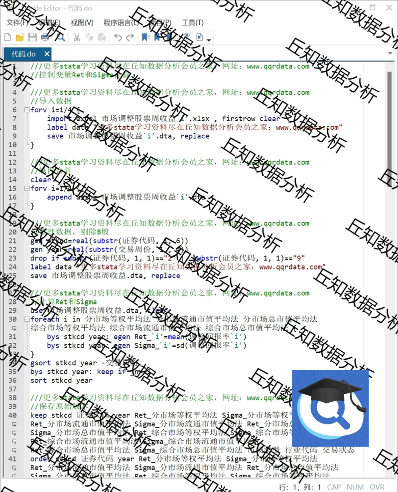 【普通数据】Ret&Simga控制变量1991-2023 Stata代码过程DO 原始参考 结果示例