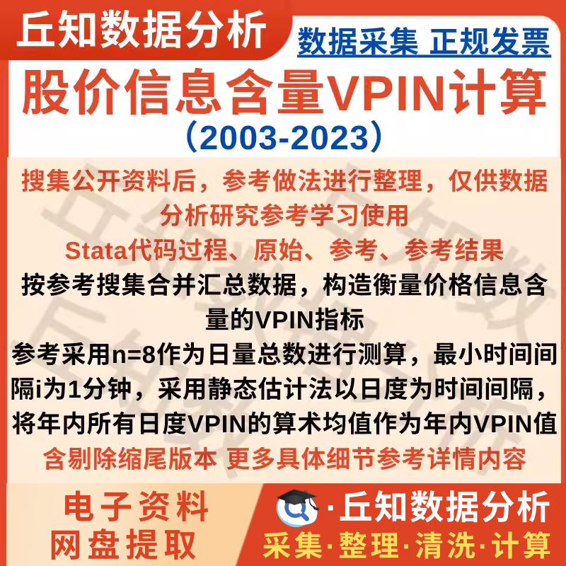 【普通数据】股价信息含量VPIN计算2003-2023Stata代码过程DO、原始、参考结果