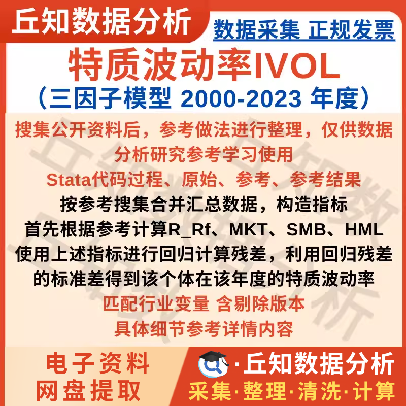 【普通数据】年度特质波动率IVOL三因子模型2000-2023Stata代码回归残差标准差