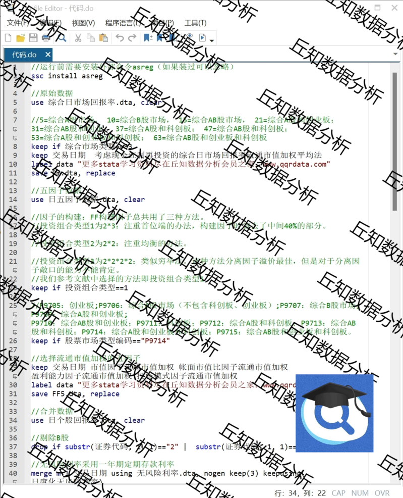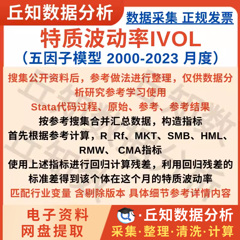 【普通数据】月度特质波动率IVOL五因子模型2000-2023Stata代码回归残差标准差