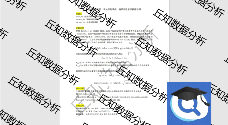 【普通数据】企业风险承担指标2000-2023总体/系统/特质Stata代码原始参考结果