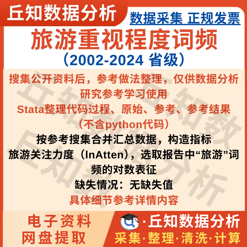 【普通数据】旅游重视程度词频2002-2024省级原始数据为文本分析结果Stata整理