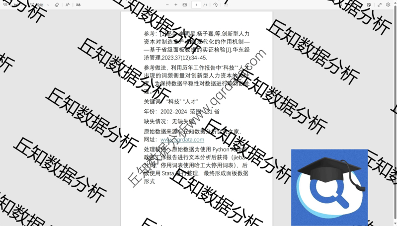 丘知数据分析会员之家,致力于提供高质量的社科数据搜集整理与分析服务,是国内领先的社科类数据服务商。在科研数据领域,我们认真对待每一位同学和老师的反馈,每年整理更新数千个变量指标,已累计服务数万科研工作者,在满足广大会员科研数据需求的同时全力提升售后服务质量,力求为大家提供高质量的社科数据服务! 在研究专题方面,我们搜集整理制作的数据专题包括但不限于:上市公司:管理层及治理、研发创新、投资融资、供应链、信息披露、会计审计税收、数字化、智能化、新质生产力、绿色发展、文本分析专题等;区域研究:空间计量、市场经济、科技创新、绿色发展、数字化、智能化、新质生产力、文本分析专题等。 丘知数据分析会员之家,每年更新推送近千个数据栏目,所有数据均支持单独购买,开通会员则可享受每日免费下载次数,欢迎老师同学们浏览订阅!如果您有定制需求也可以联系我们。