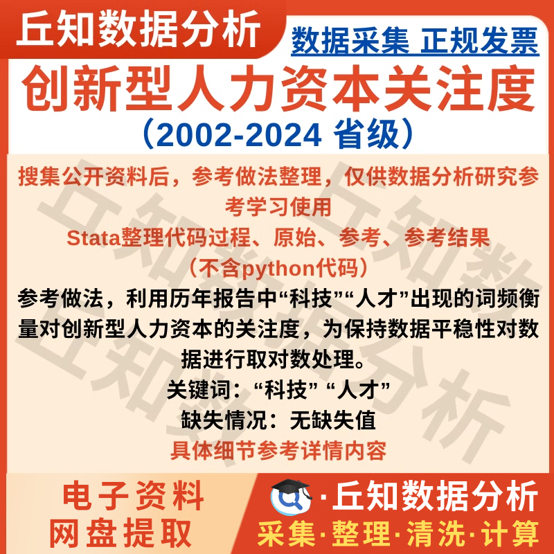 【普通数据】创新型人力资本关注度2002-2024省级原始为文本分析结果Stata整理