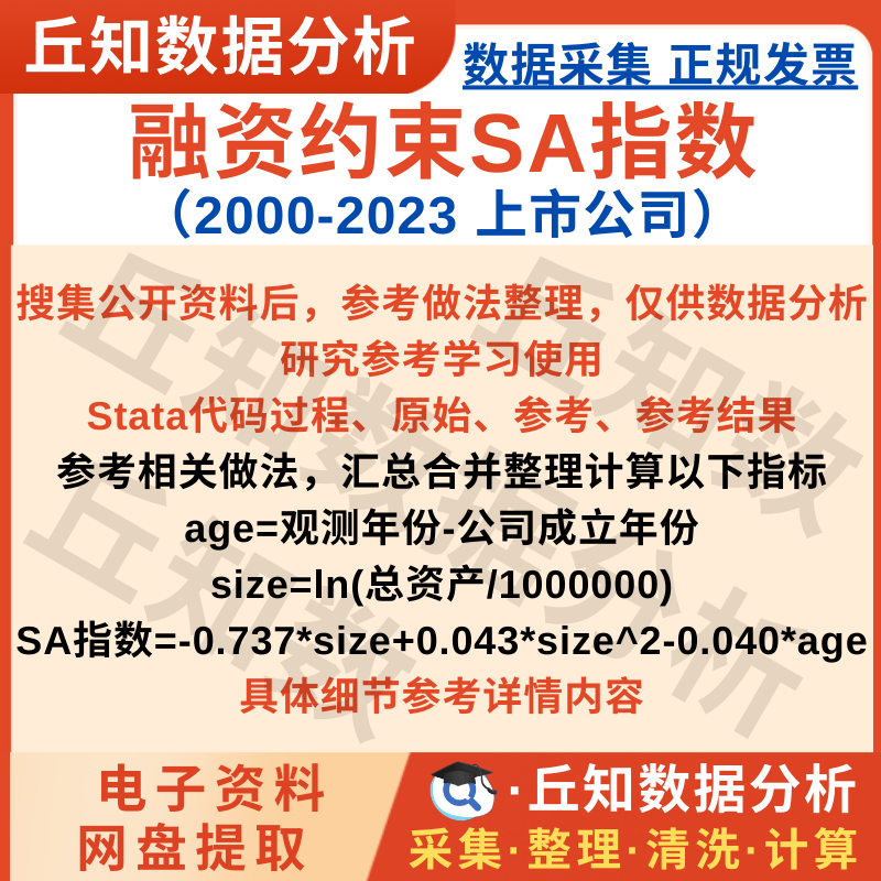 【普通数据】上市公司融资约束SA指数2000-2023Stata代码Do文档含剔除缩尾版本