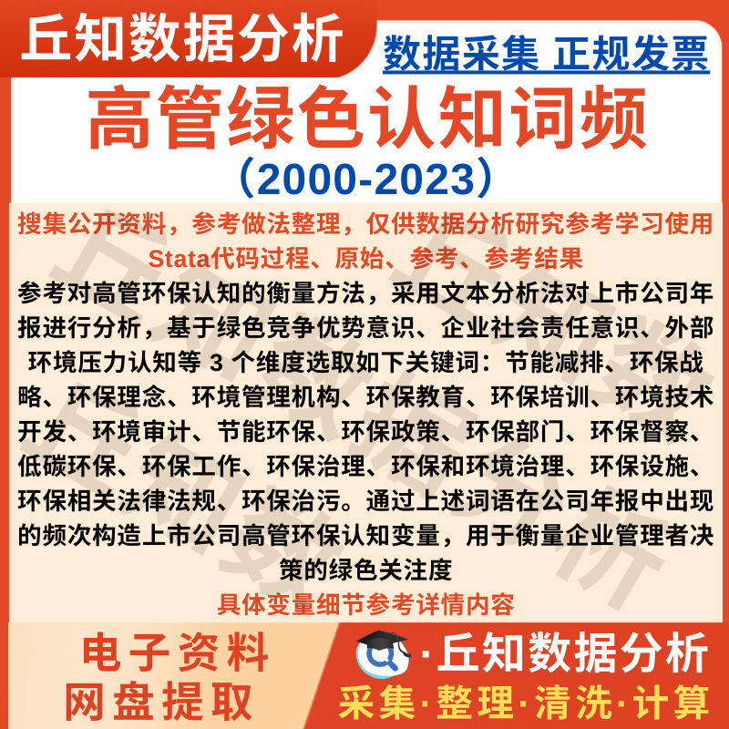 【普通数据】高管绿色认知2000-2023上市公司数据含Stata代码面板数据原始参考