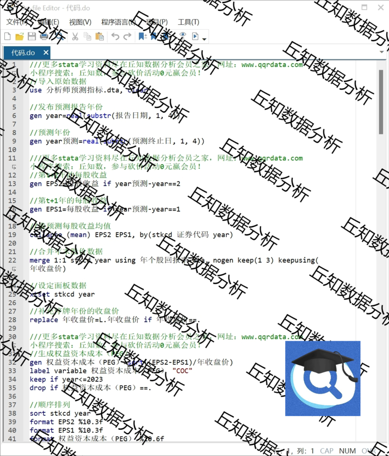 【普通数据】上市公司权益资本成本数据2023-2001PEG模型含stata代码 参考结果