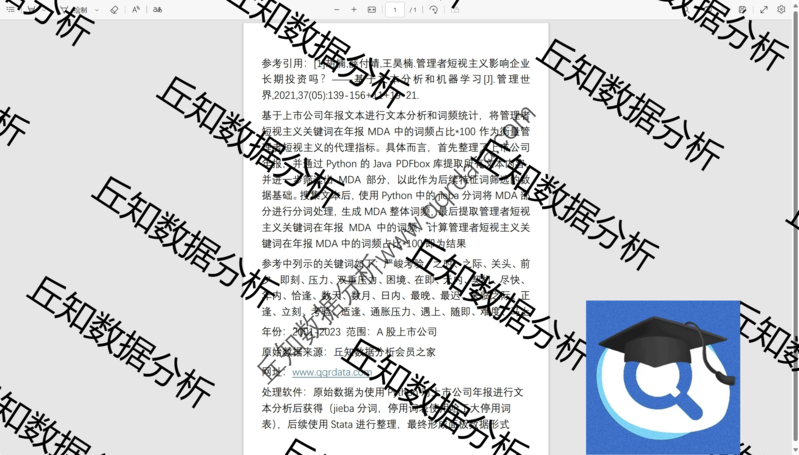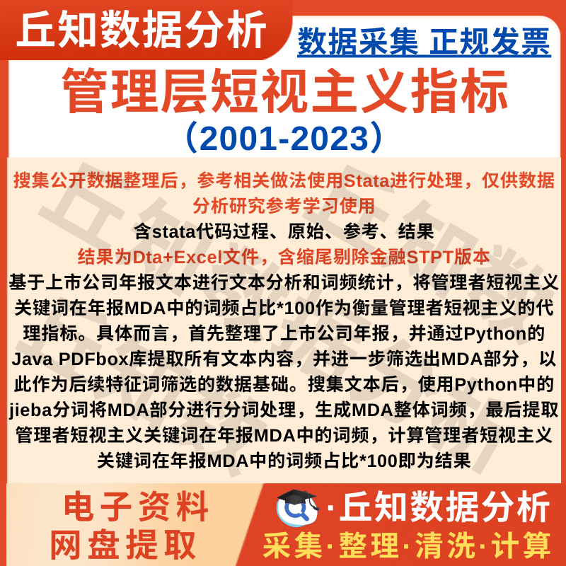 【普通数据】管理层短视主义指标2023-2001年Stata代码含缩尾剔除版已匹配行业