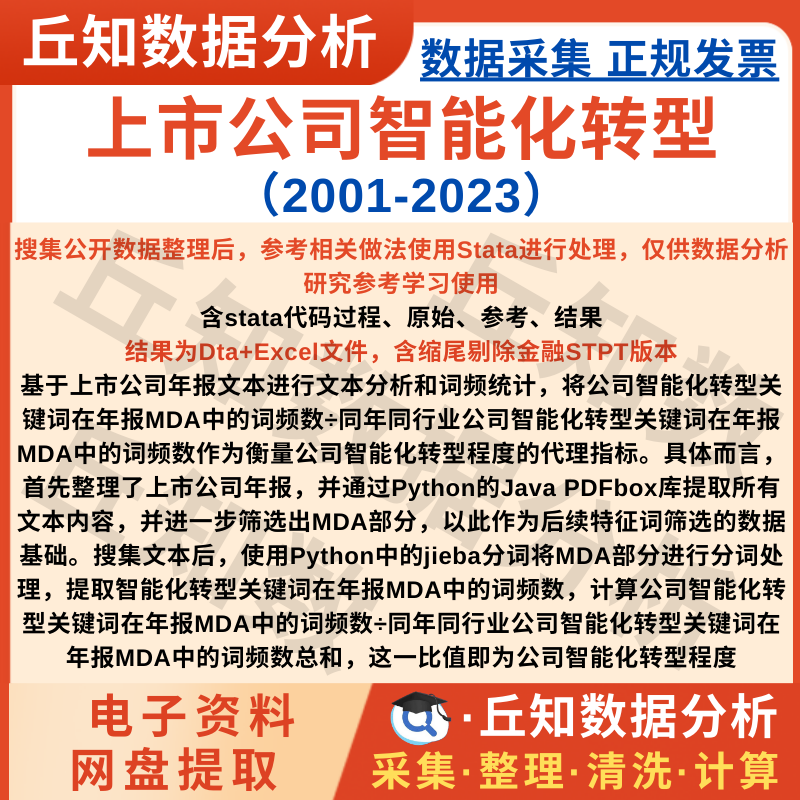 【普通数据】上市公司智能化转型2023-2001Dta数据年报关键词频Stata整理