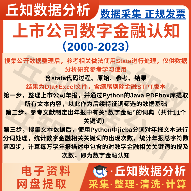 【普通数据】上市公司数字金融认知2023-2000年文本分析词频数据Stata面板原始