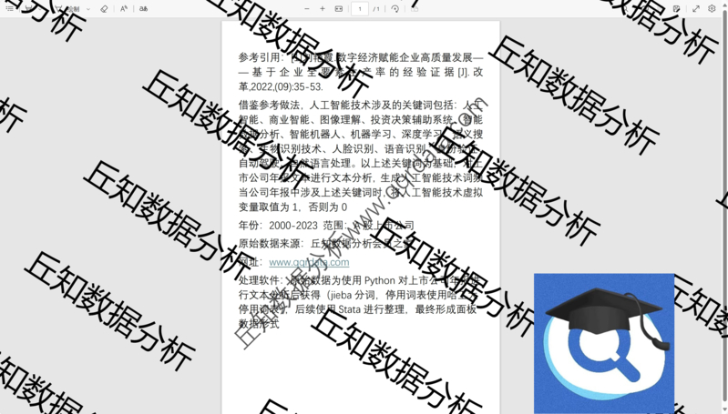 丘知数据分析会员之家,致力于提供高质量的社科数据搜集整理与分析服务,是国内领先的社科类数据服务商。在科研数据领域,我们认真对待每一位同学和老师的反馈,每年整理更新数千个变量指标,已累计服务数万科研工作者,在满足广大会员科研数据需求的同时全力提升售后服务质量,力求为大家提供高质量的社科数据服务! 在研究专题方面,我们搜集整理制作的数据专题包括但不限于:上市公司:管理层及治理、研发创新、投资融资、供应链、信息披露、会计审计税收、数字化、智能化、新质生产力、绿色发展、文本分析专题等;区域研究:空间计量、市场经济、科技创新、绿色发展、数字化、智能化、新质生产力、文本分析专题等。 丘知数据分析会员之家,每年更新推送近千个数据栏目,所有数据均支持单独购买,开通会员则可享受每日免费下载次数,欢迎老师同学们浏览订阅!如果您有定制需求也可以联系我们。
