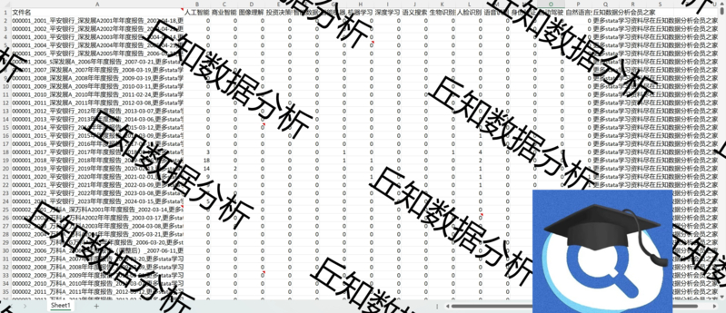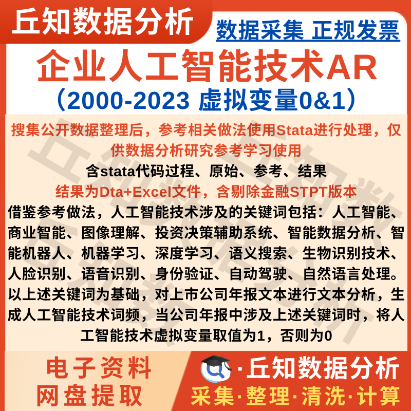 【普通数据】上市公司人工智能技术AR2023虚拟变量0&1 年报词频分析 Stata整理