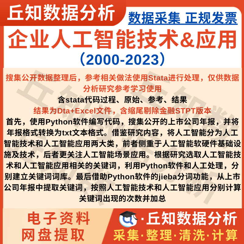 【普通数据】上市公司人工智能技术&应用2023-2000年报词频Stata Dta+Excel