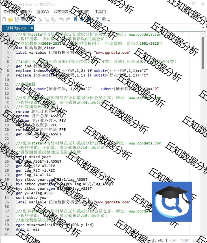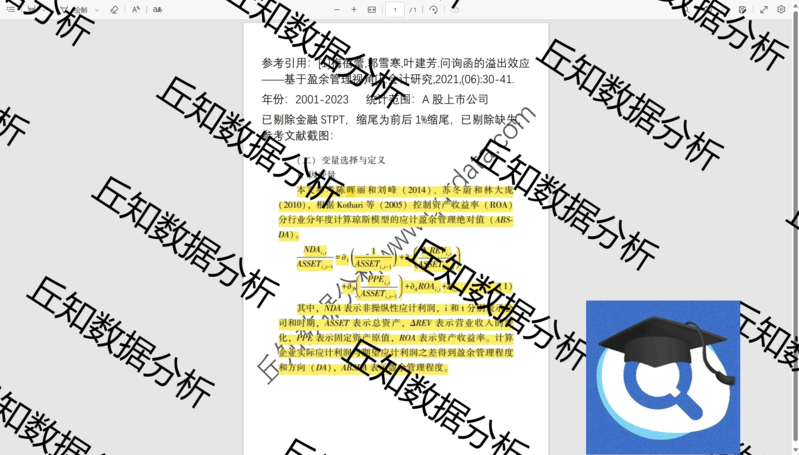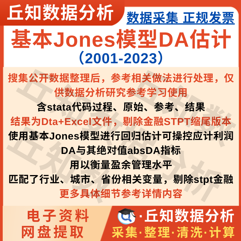 【普通数据】基本Jones模型2023-2001年DA计算盈余数据含stata代码过程参考等
