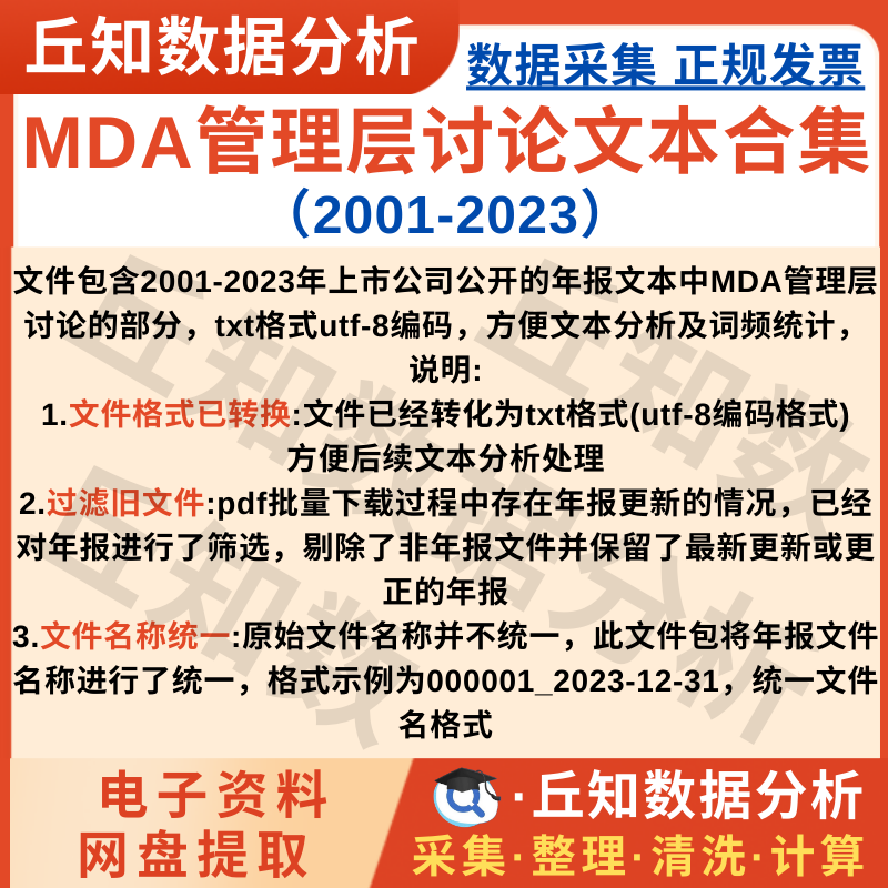 【普通数据】上市公司年报MDA管理层讨论与分析文本2023-2001TXT整理UTF-8编码