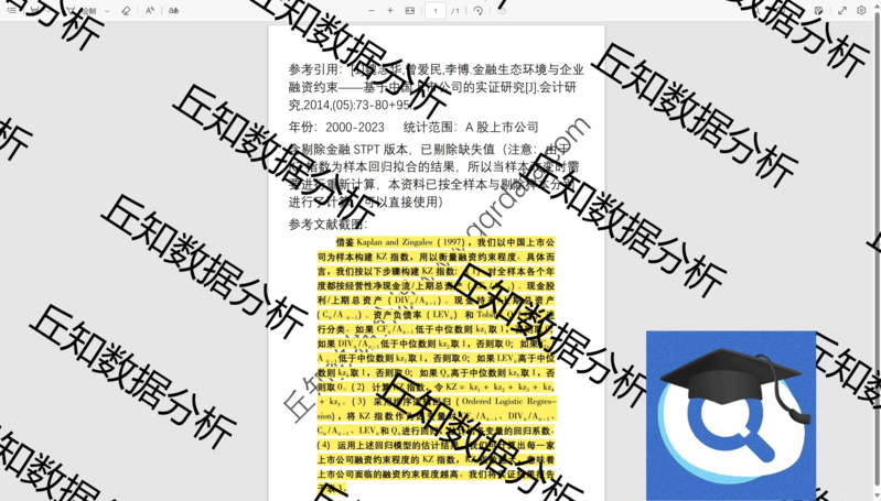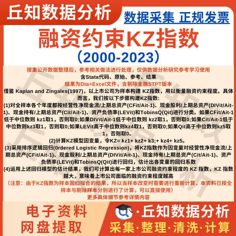 【普通数据】上市公司融资约束KZ指数2023-2000Stata代码Do文档含剔除金融STPT