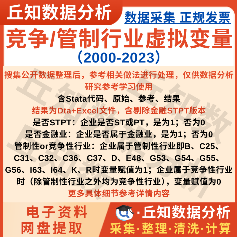 【高级数据】竞争管制行业虚拟变量2023-2000数据Stata代码异质性分组调节变量