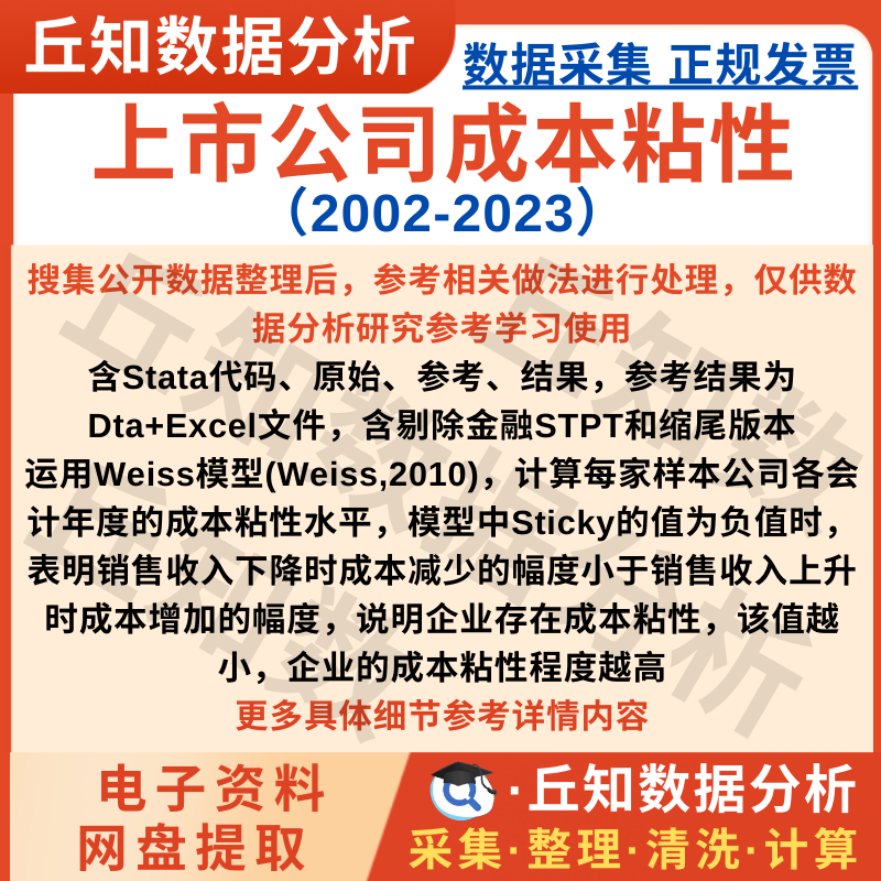 【普通数据】上市公司成本粘性数据2023-2002年Weiss模型Stata代码do文档 结果