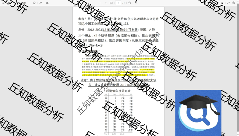 【普通数据】上市公司供应链透明度2023-2012数据含stata代码过程参考剔除结果