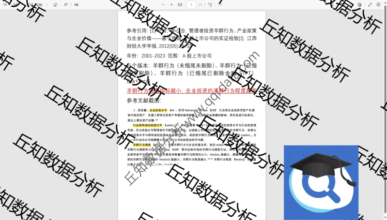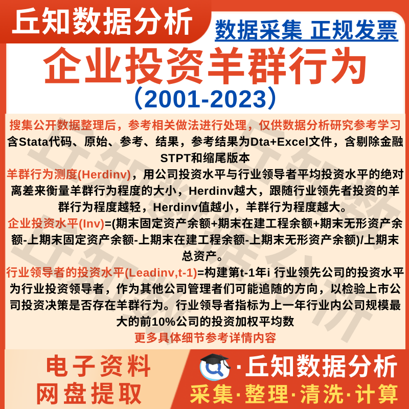 【普通数据】企业投资羊群行为2023-2001含stata代码公司与行业投资水平的离差