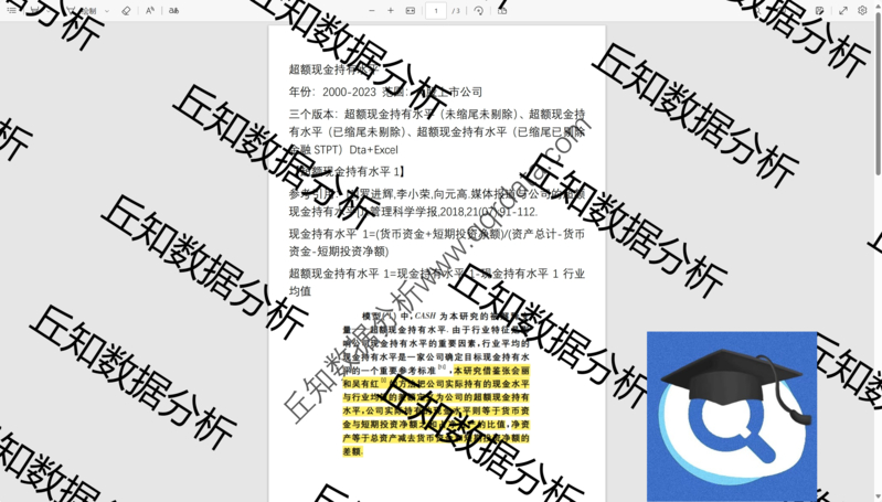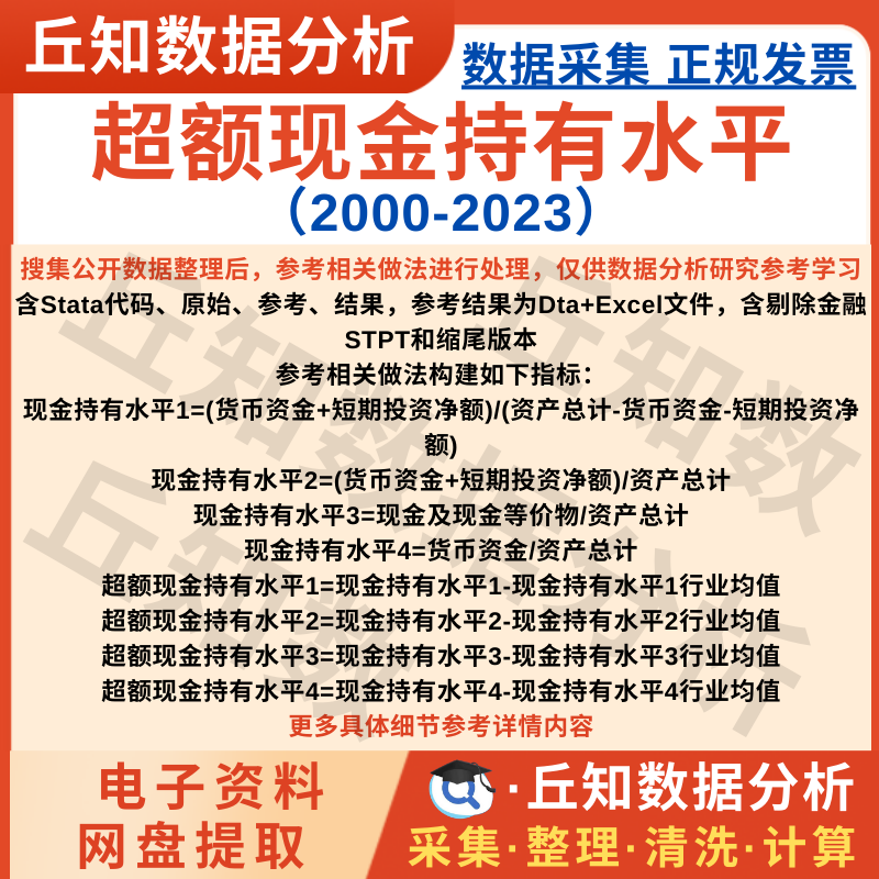 【普通数据】超额现金持有水平2023-2000上市公司数据含stata计算代码过程参考