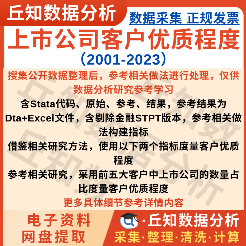 【普通数据】上市公司客户优质程度计算2023-2001年Stata代码过程,含剔除版本