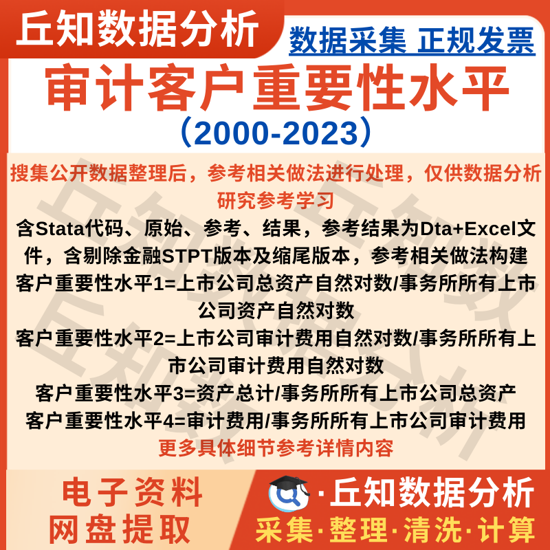 【普通数据】审计客户重要性水平2023-2000年Stata代码过程含参考上市公司数据