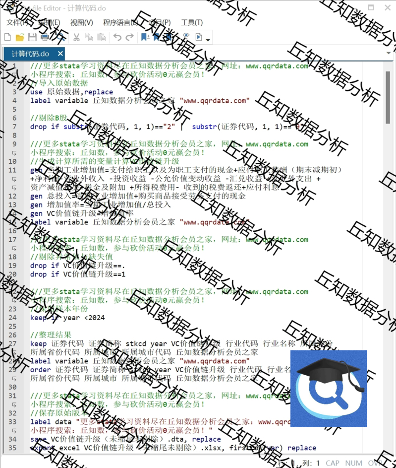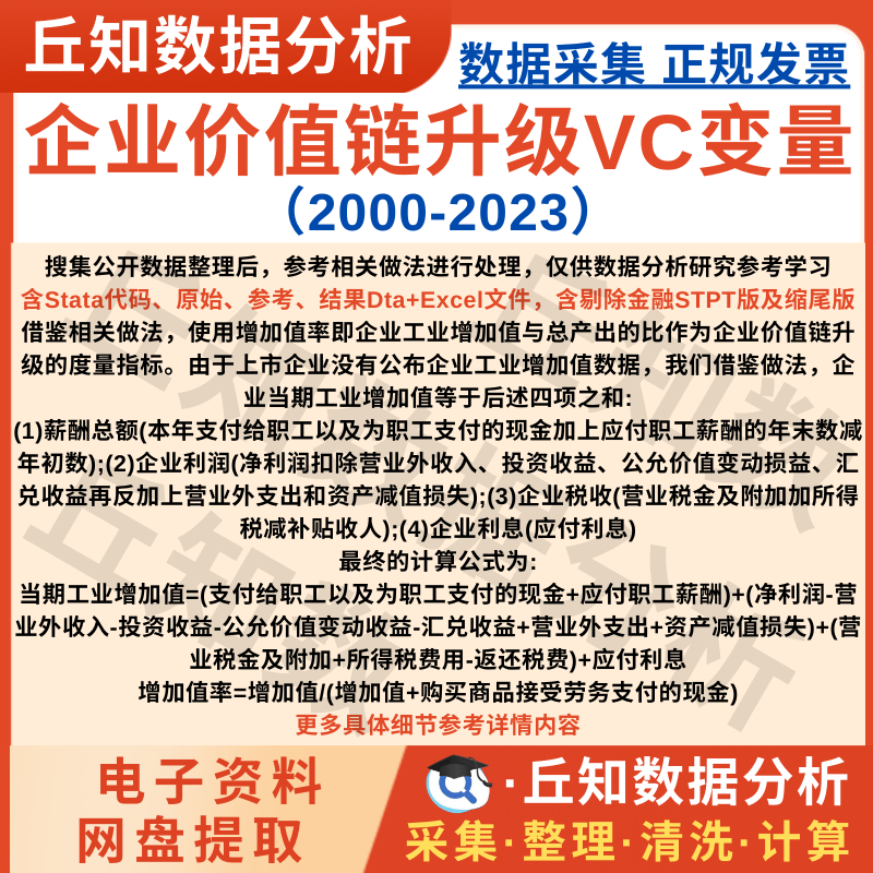 【普通数据】上市公司企业价值链升级2023-2000数据含Stata代码含剔除版缩尾版