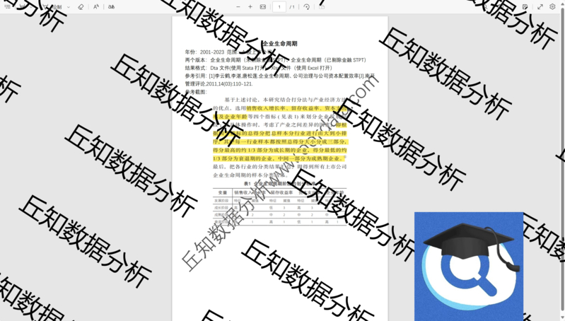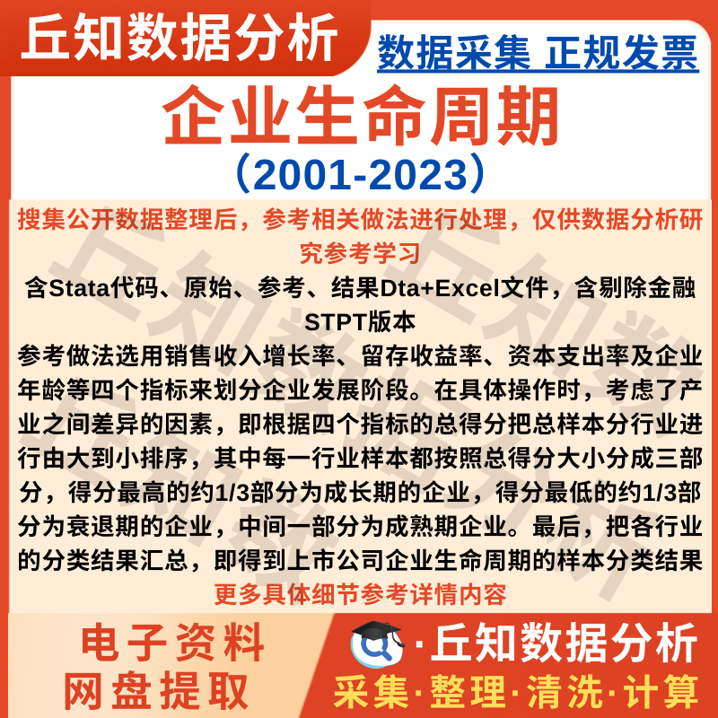 【普通数据】上市公司企业生命周期数据2023-2001含Stata代码原始数据参考结果