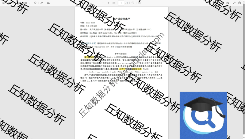 【普通数据】上市公司资产误定价水平2023-2000数据含Stata代码Do文档含剔除版