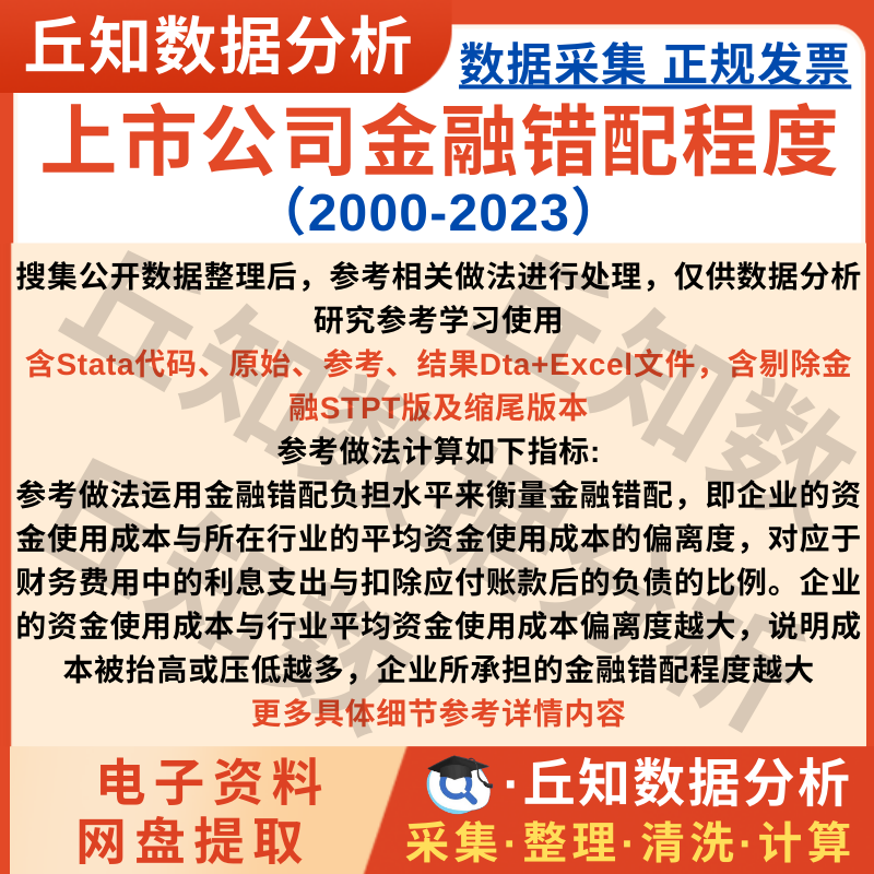 【普通数据】上市公司金融错配程度2023-2000资金成本行业偏离度Stata代码过程