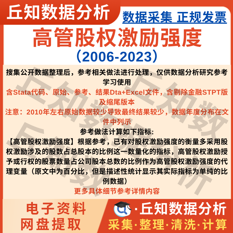【普通数据】高管股权激励强度2023-2006含stata代码Do文档上市公司数据含说明