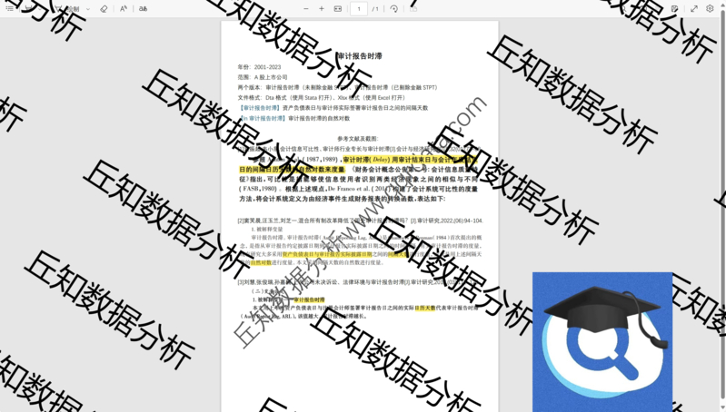 【普通数据】上市公司审计报告时滞2023-2001数据含stata代码Do文档含剔除版本