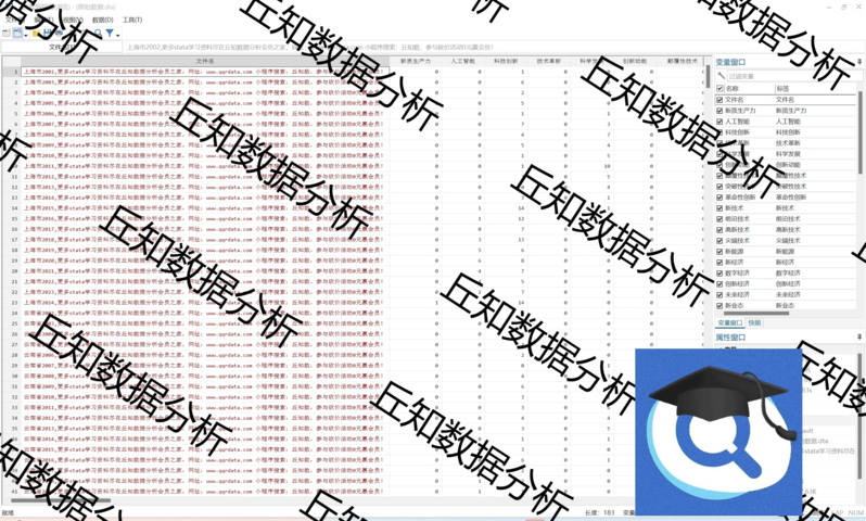 丘知数据分析会员之家,致力于提供高质量的社科数据搜集整理与分析服务,是国内领先的社科类数据服务商。在科研数据领域,我们认真对待每一位同学和老师的反馈,每年整理更新数千个变量指标,已累计服务数万科研工作者,在满足广大会员科研数据需求的同时全力提升售后服务质量,力求为大家提供高质量的社科数据服务! 在研究专题方面,我们搜集整理制作的数据专题包括但不限于:上市公司:管理层及治理、研发创新、投资融资、供应链、信息披露、会计审计税收、数字化、智能化、新质生产力、绿色发展、文本分析专题等;区域研究:空间计量、市场经济、科技创新、绿色发展、数字化、智能化、新质生产力、文本分析专题等。 丘知数据分析会员之家,每年更新推送近千个数据栏目,所有数据均支持单独购买,开通会员则可享受每日免费下载次数,欢迎老师同学们浏览订阅!如果您有定制需求也可以联系我们。