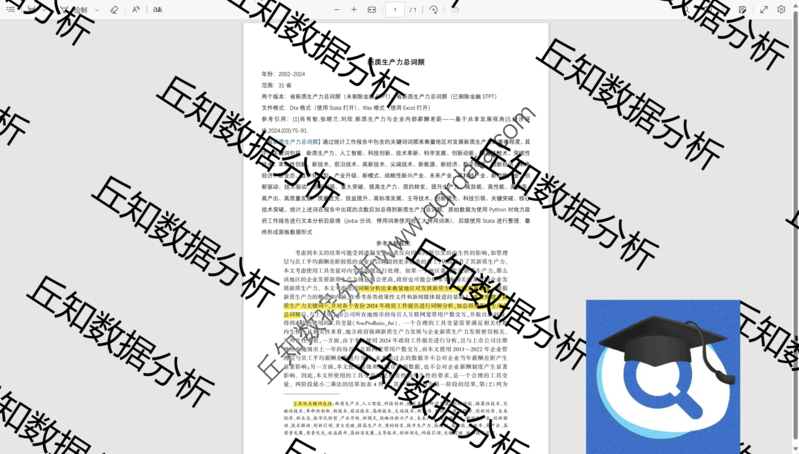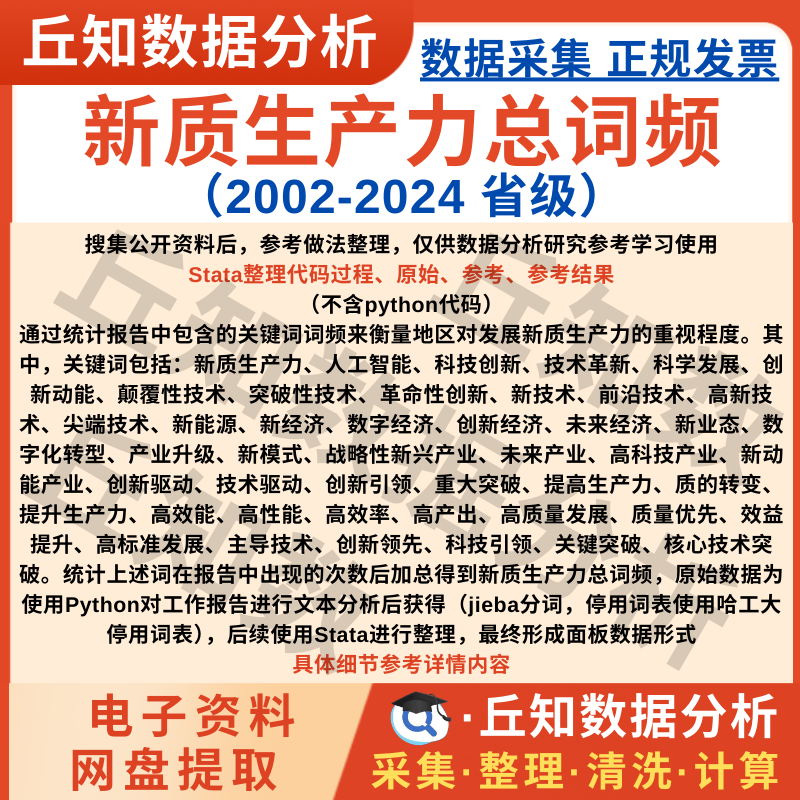 【普通数据】省级新质生产力词频指标2024-2002年Stata面板数据含参考说明文件