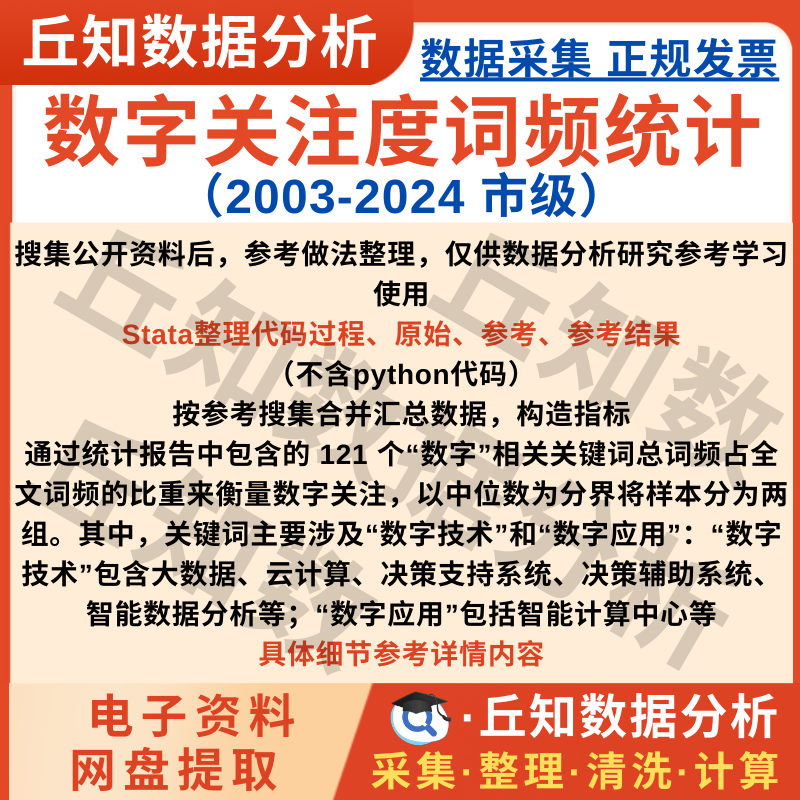 【普通数据】数字关注度词频2024-2003年市级数据Stata整理包含说明文件及参考