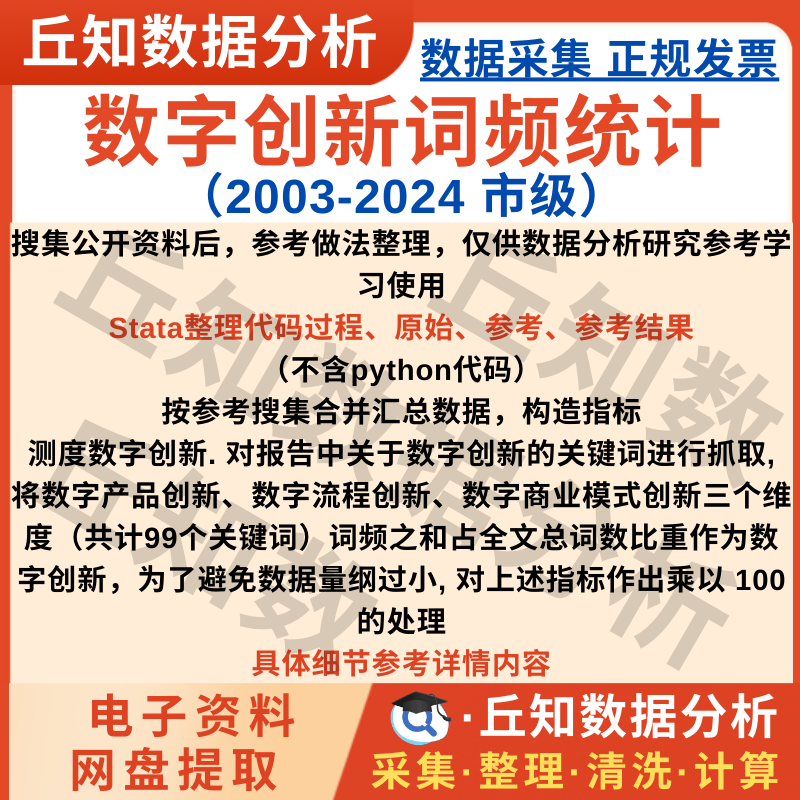 【普通数据】数字创新词频统计2024-2003市级数据Stata面板整理含参考说明文件