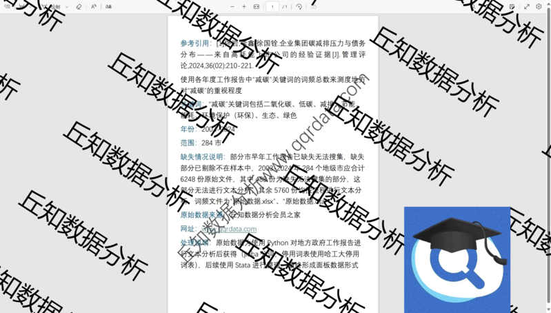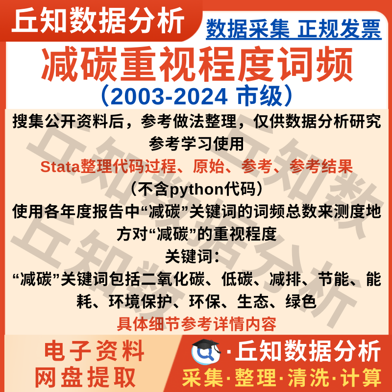 【普通数据】减碳重视程度词频2024-2003市级原始数据为文本分析结果Stata整理